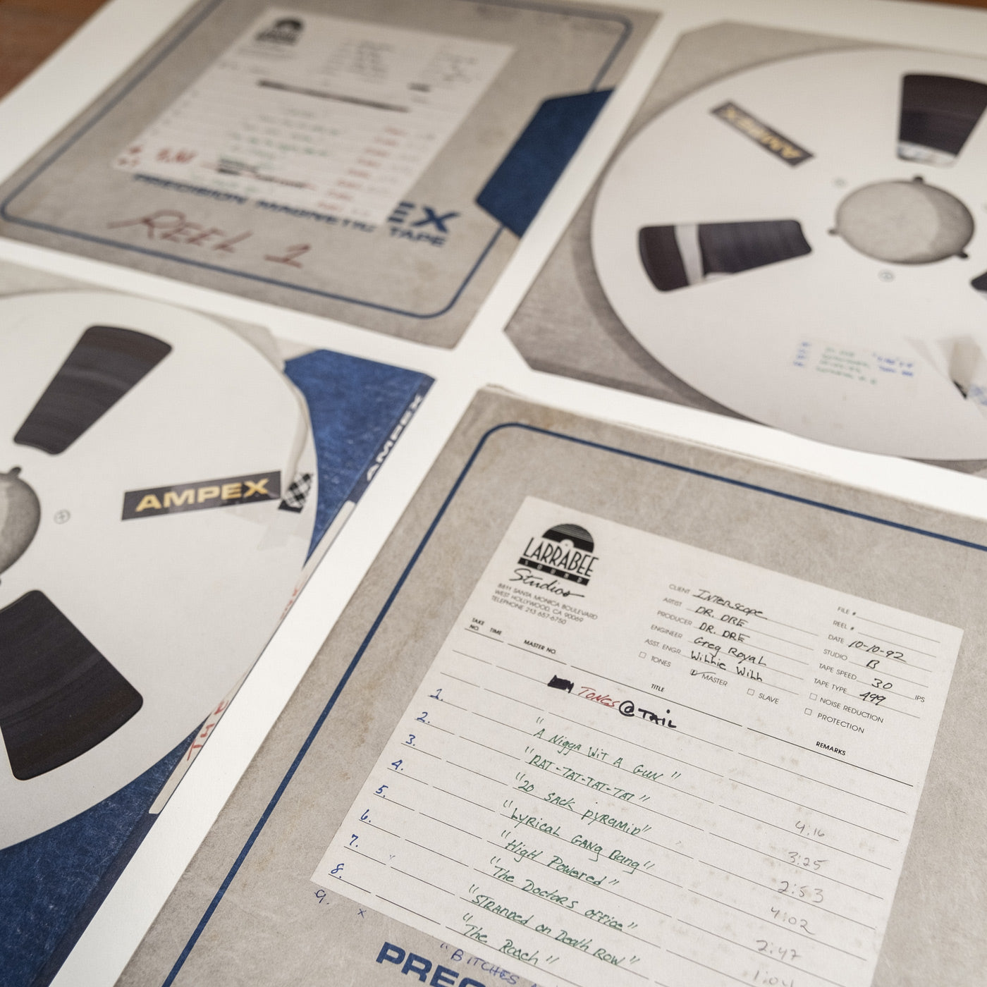 Own a piece of history with this Limited-Edition fine art print of the original Master Recordings from Dr. Dre's The Chronic album.